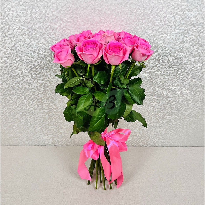 • Роза - 21 штука, цвет - розовый, длина стебля - 60 см;
