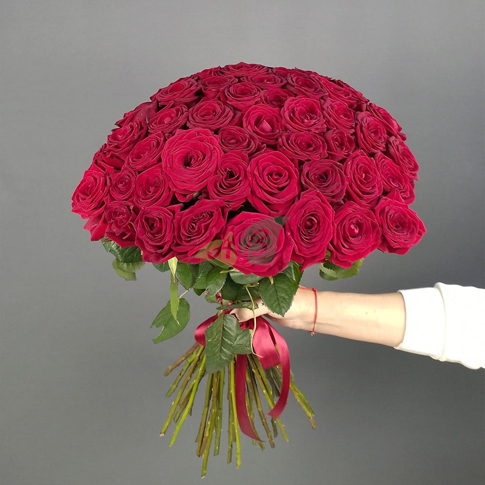 45 свежих красных роз в букете